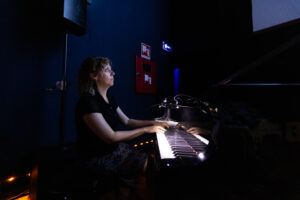 Piano accompaniment by Stephen Horne, drum accompaniment by Frank Bockius