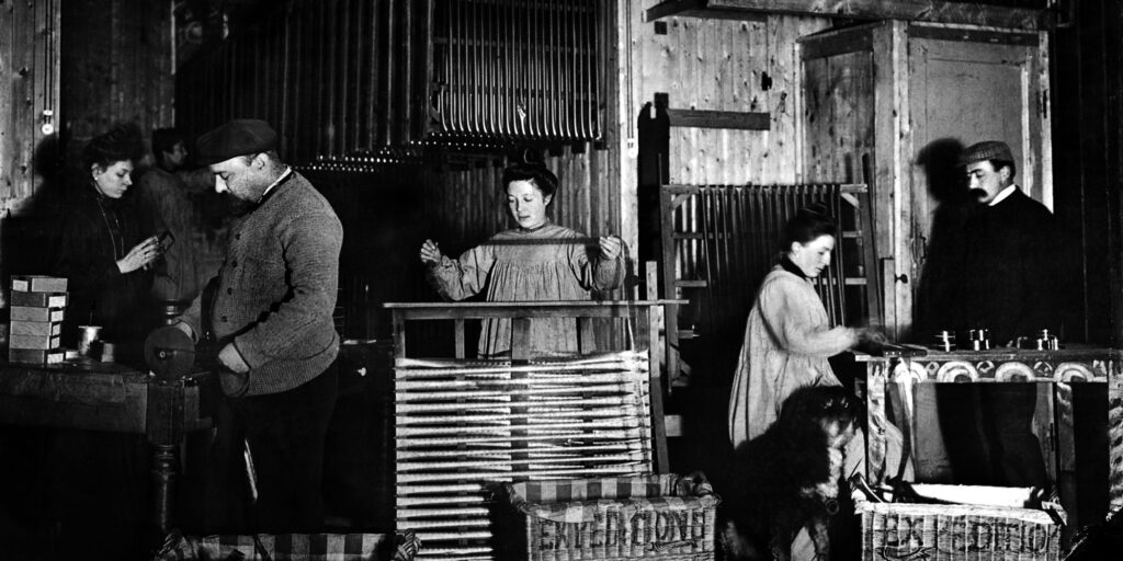 Showmen either used theatrical venues and cafés-chantant for their screenings or they travelled with their own venues: gorgeous fairground tents, the first cinema palaces. It was an international business. Entrepreneurs such as Leilich, Kullmann, Böcher and Bläser came from old German or Swiss dynasties of fairground people. They tried to spend the winter season in the mild climates of Italy: Böcher stayed in Bologna in Piazza VIII Agosto for three months (October 1901-January 1902) and Kullmann’s Cinematografo Gigante for two months (December 1901 to January 1902).