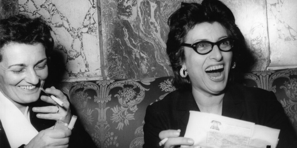 “She-wolf and vestal virgin, aristocrat and tramp, brooding and clownish,” was Federico Fellini’s definition of Magnani as he followed her in Roma, a mini-cameo which only lasts a few minutes and was destined to be her final appearance in the cinema. It is safe to say that such an actress could not exist today. But Magnani was unique and a maverick even then. Confounding on the stage, including in her audition for the Academy of Dramatic Arts, and disconcerting as a star, she was often criticised or mocked in the mainstream media – too big for our cinema and as symbol for a lost Italy, “the face of a past which is lost forever, an icon whom we cursed” (Goffredo Fofi). Poets like Pasolini and Ungaretti waxed lyrical, each in their own way, over her cry in Roma città aperta, but two other such moments frame her characters’ fates. First, there is the scene towards the end of Bellissima in which she sits on a bench, weeping as she embraces her daughter and looking around bewildered, muttering “Help”; and then there is the final scene of Mamma Roma in which she is restrained by a small crowd once more, stifling her tears as she stares wide-eyed at the new Rome in the distance.