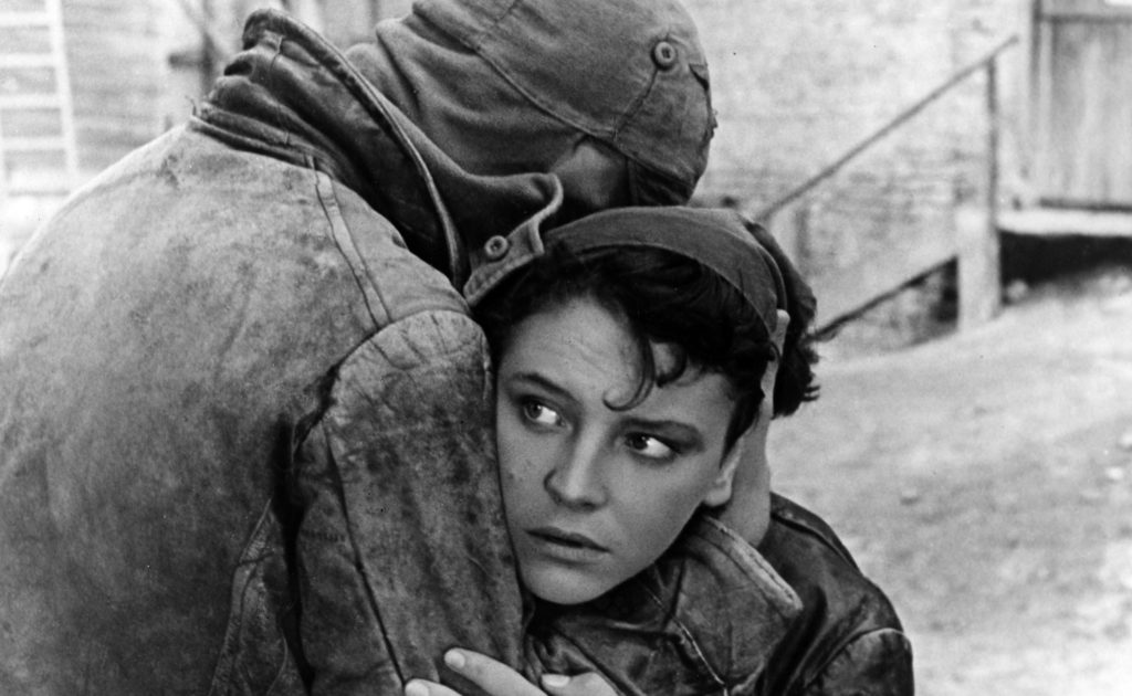 Cinema, of course, had once again sensed it all in advance. 1956 is also the year of Aleksandr Alov and Vladimir Naumov’s Pavel Korčagin and Aleksandr Ivanov’s Soldaty (Soldiers, 1956), two fine examples for the official cinema to come yet characterized still by early Thaw’s mad daring: same subjects as before, but markedly different treatments – savage and despair-riddled, grim and gruesome. It’s not surprising that in a similar spirit of disquiet earlier aesthetics of distortion and ridicule (think FEKS) get tapped as sources of inspiration, points of reference, as exemplified by Vladimir Petrov’s late masterpiece Poedinok (The Duel, 1957) as well as Grigorij Nikulin’s ultra dark satire Smert’ Pazuchina (Death of Pazuchin, 1957), an almost unknown experiment in mixing theatre and film. Ditto that a formidable femme fatale turns up in a melodrama lending it a noir’ish edge (Raznye sud’ by, Different fortunes, Leonid Lukov, 1956); that a splendid civil war actioner plays at times like an anxiety-riddled kammerspiel (Ognennye vërsty, Fiery Miles, Samson Samsonov, 1957); or that a children’s film reveals itself as a sweetly tender existential(ist) fable of trauma and loss (Devočka iščet otca, A Girl Looking for Her Father, Lev Golub, 1959). This sense of anger, a violent longing for the Communist promise to be true mixed with anguish and a double dose of doubt, would very much stay with Soviet cinema till the next massive shift in leadership, Brežnev’s consolidation of power – albeit more at the fringes and not in mainstream productions, let alone prestige endeavours like Pavel Korčagin and Soldaty. Exceptions included, like that most irascible one: Vasilij Ordynskij (Četvero, The Four, 1958), a mellow cynic whose art compares to nothing else in a film culture enamoured with the casual melancholia yet civic optimism embodied by Jakov Segel’ and Lev Kulidžanov’s Dom, v kotorom ja živu (The House I Live In, 1957).