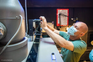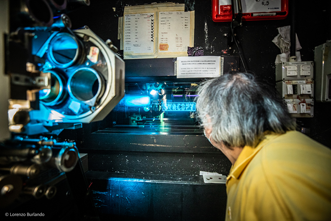Lorenzo Burlando ha fotografato per noi la pellicola “behind the scenes”, durante le prove in cabina di proiezione.