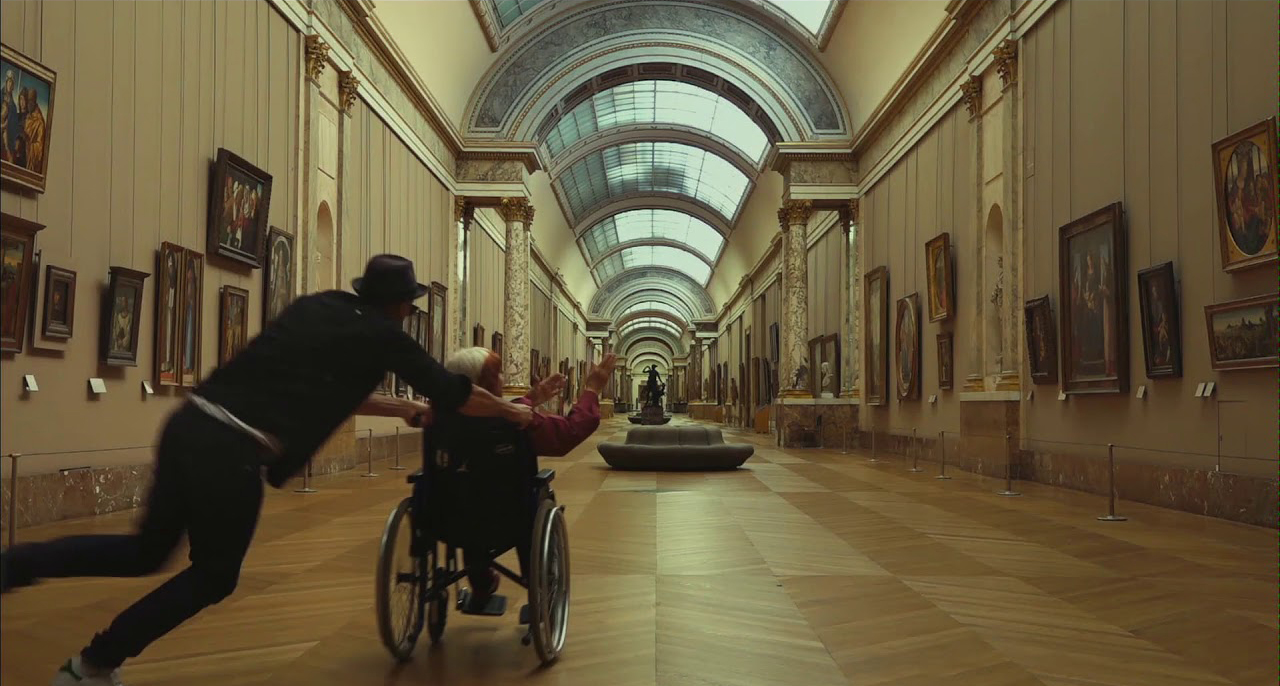 Esemplare, a questo proposito, è la scena inserita all’interno della sequenza al porto di Le Havre, in cui JR spinge Agnès in sedia a rotelle a tutta velocità lungo la galleria italiana del museo del Louvre. Si tratta di una citazione ironica di una celebre scena del film Bande à part di Jean-Luc Godard, grande amico della Varda. Girata quasi per scherzo, la scena è stata poi inserita all’interno di un contesto con cui sembra avere poco a che fare ma a cui magicamente si lega per associazione di idee (La Varda ha raccontato come l’elevatore che portava al container nel porto di Le Havre le avesse ad un tratto ricordato l’ascensore all’interno del Louvre).