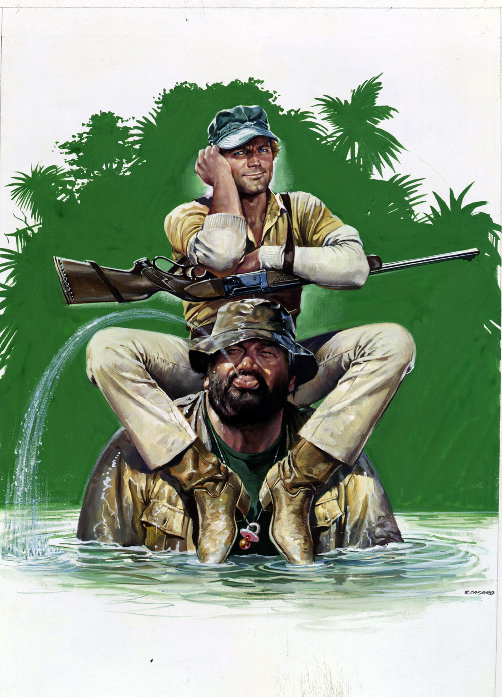 Illustrator of film imagery, Renato Casaro was born in Treviso in 1935. While at school, unlike his peers, he was fascinated by the magic art of the billboards displayed to get the public’s attention. Thus began his artistic journey, which began as a self-taught endeavor to reproduce works by important artists like Norman Rockwell and Angelo Cesselon.