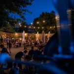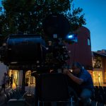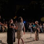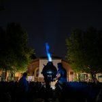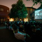 La lanterna ad arco voltaico illumina la prima serata di proiezioni in Piazzetta Pasolini
