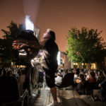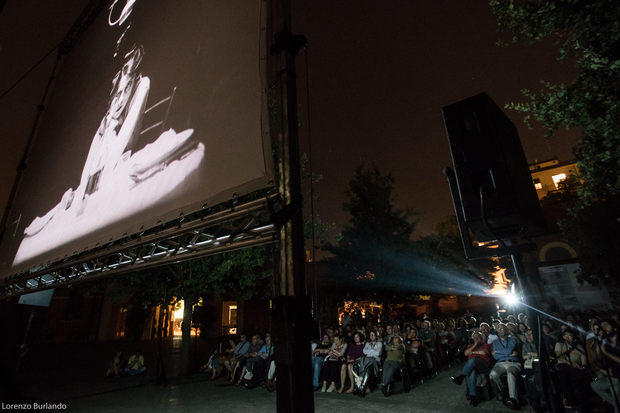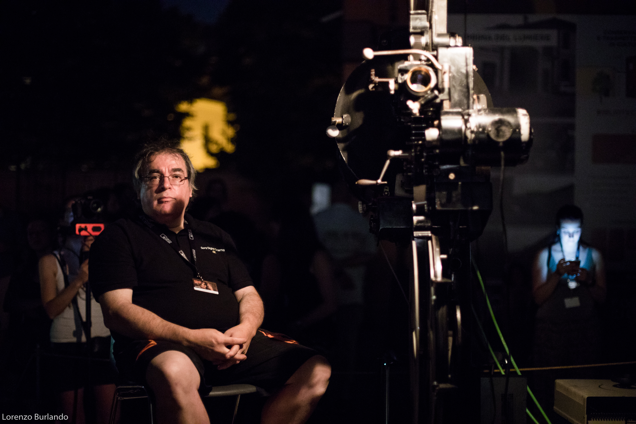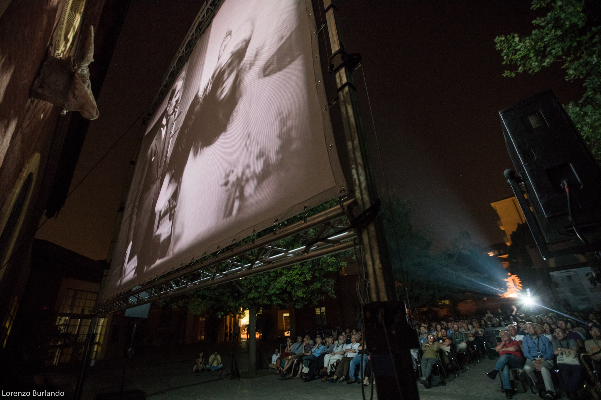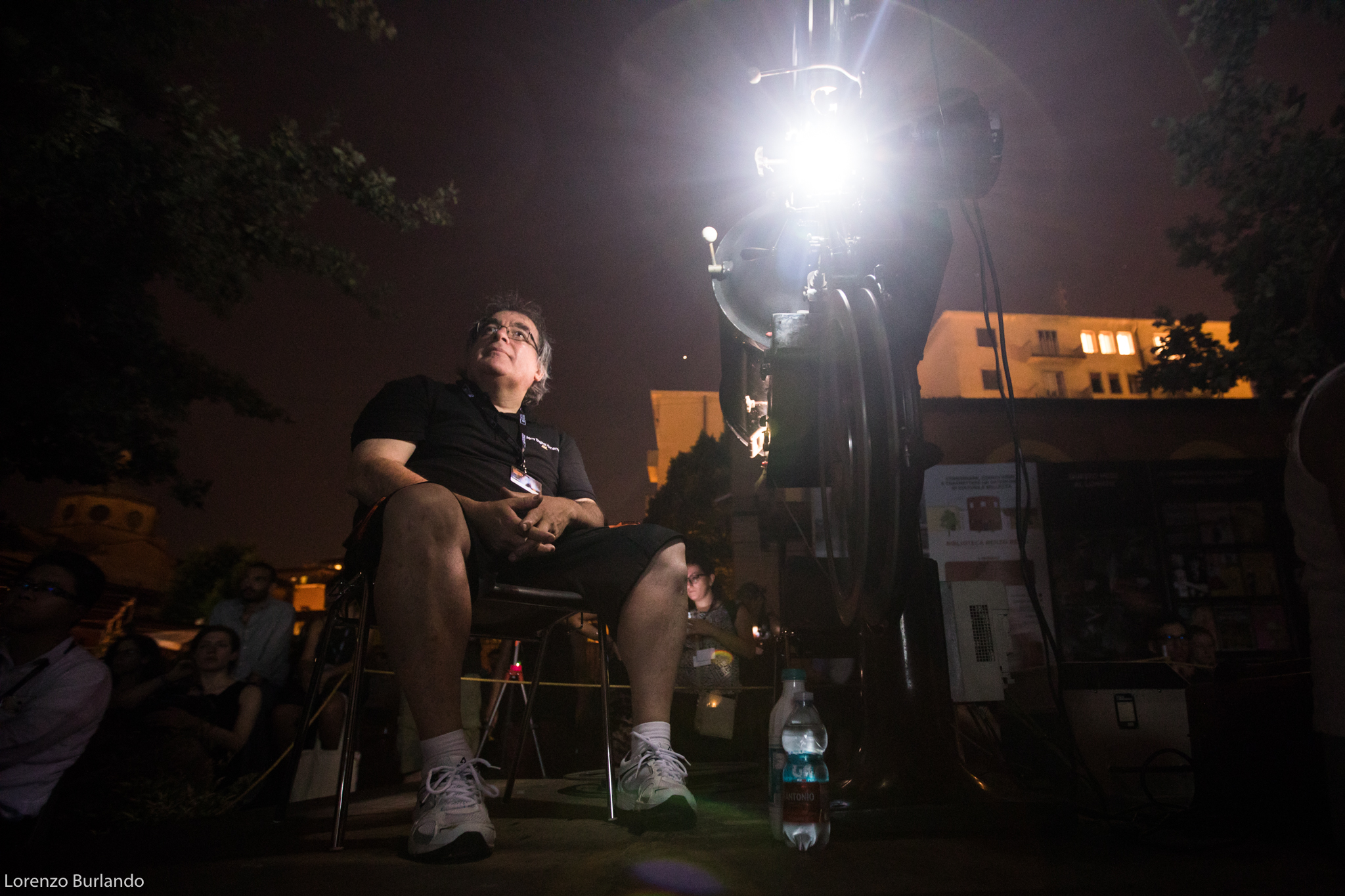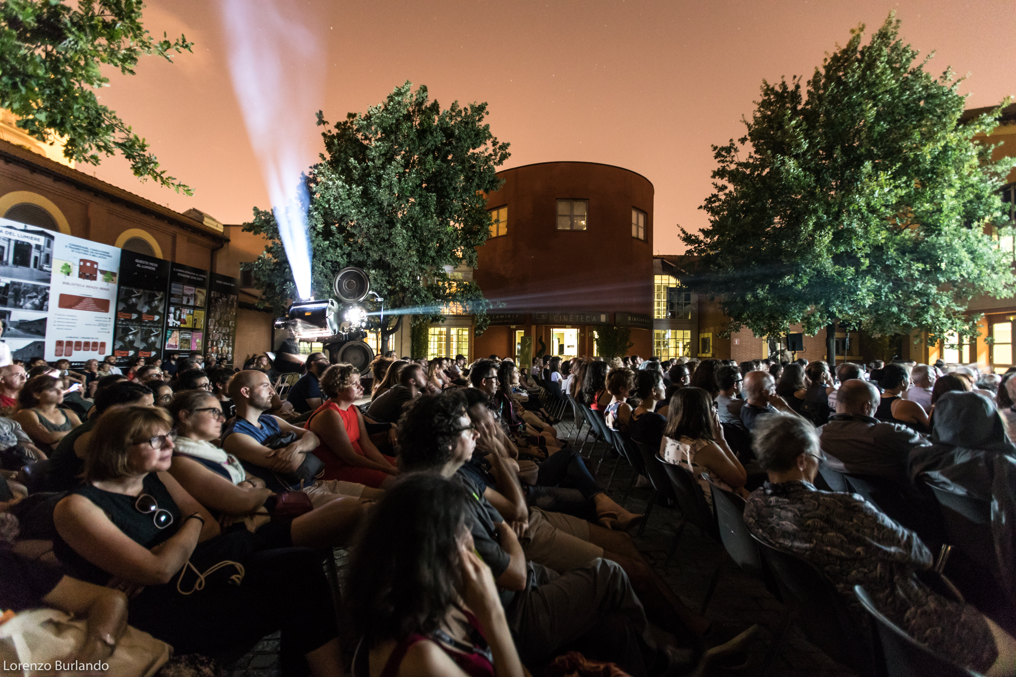 La lunga giornata di giugno si è finalmente decisa a lasciare spazio alla sera, le ombre di rami e foglie hanno smesso di danzare sullo schermo che da bianco si è fatto nero, pronto a ricevere bagliori antichi e dare in cambio stupore. E’ la sera più magica, la più attesa dal cinefilo nostalgico e gli ingredienti per un’esperienza multisensoriale ci sono tutti: la dimensione è quella intima di piazzetta Pasolini, fra le architetture fine Ottocento dell’antico mattatoio cittadino e la musica dal vivo, arredi vintage e vecchi bauli adornano la zona aperitivo (o forse dovremmo dire zona ristoro che fa più rétro) e poi c’è lei, la signora della piazza che di giorno si ripara dal sole sotto al suo personale gazebo come una dama d’altri tempi farebbe con l’ombrellino. Tutti la guardano, la fotografano, la riprendono, ‘la nonna’ la chiama affettuosamente chi la conosce come Stefano Bognar, il proiezionista che da quarant’anni accudisce con amore la maestosa lanterna a carbone della Cineteca che per tre serate renderà unica l’esperienza del Cinema Ritrovato. Le ore passano e la piazza la corteggia, la studia timida e si chiede che effetto farà; la sala a cielo aperto si riempie in fretta e il silenzio si fa fitto, quasi religioso mentre l’allegria conviviale dell’aperitivo lascia spazio alla magia del passato che ritorna. E’ la prima sera e per il debutto ‘la nonna’ ha scelto Addio giovinezza! di Augusto Genina (1918). Via i telefoni, via le telecamere, stasera non c’è spazio per le tecnologie e il digitale, solo il rumore ritmico della griffa e il piccolo mondo dell’amore struggente di Mario e Dorina saturano l’aria insieme ai fumi dei carboni e alle note del trio di Daniele Furlati. A vegliare sul sogno collettivo della piazza c’è lui, il genovese Bognar, proiezionista dall’età di 14 anni, sì proprio come Totò Cascio in Nuovo cinema Paradiso, da bambino cacciato a pedate dalle sale di proiezione e oggi ancora con la sua bottiglia di latte a portata di mano perché “una volta i proiezionisti – racconta – avevano diritto per contratto nazionale a mezzo litro di latte al giorno… respirare i fumi dei carboni non era molto salutare”. Lui è lì che vigila affinché l’incanto non si spezzi. “Il proiettore vecchio, il film muto, il fumo che esce… questo è il fascino. Questo è il cinema”.